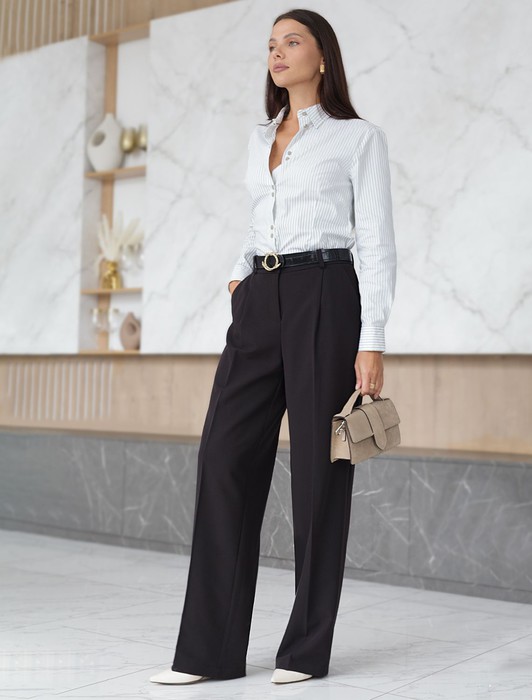 Состав: 60%ПЭ 36%Вис 4%ПУ; ПОДКЛАДКА- 100%ПЭ Параметры модели на первом фото: Рост 172, бюст 88, талия 64, бедра 88Брюки-палаццо выполнены из фактурной поливискозы. Модель дополнена боковыми карманами и отлично подойдет как для строгого делового образа с блузкой и жакетом, так и для более расслабленного с футболкой и водолазкой. Эластичный материал изделия поддерживает оптимальный микроклимат, формоустойчивость и комфорт в течение всего дня.