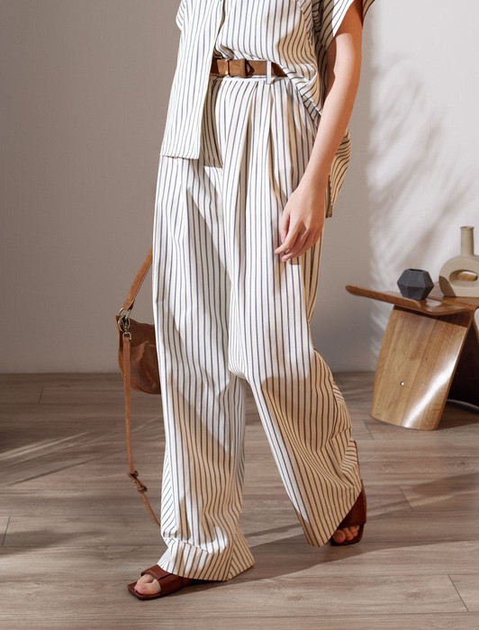 Брюки палаццо в полоску из легкого хлопкового поплина