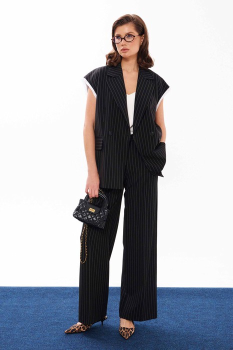 Брюки: Высота посадки - 28см, Длина брюк без пояса - 108см, Длина по внутреннему шву - 83.5см, Ширина брючин сверху - 72см, Обхват брюк по низу - 64.5см, Ширина по бедрам - 54см, Ширина по талии - 41см;