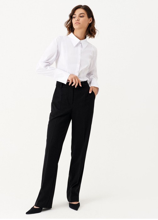 Брюки: Высота посадки - 30см, Длина брюк без пояса - 106см, Длина по внутреннему шву - 84,5см, Ширина брючин сверху - 66см, Обхват брюк по низу - 47см, Ширина по бедрам - 52,5см, Ширина по талии - 39,5см