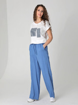 Промеры на примере 42 р.: Длина изделия по боковому шву с учетом пояса 114 см, ОТ - 68 см, ОБ - 94 см. Ширина(1/2) брюк по низу 31,5 см.