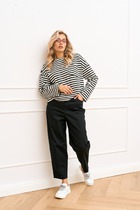 Модель свободного кроя, на притачном поясе. Пояс частично собран на резину. Спереди по талии защипы.
