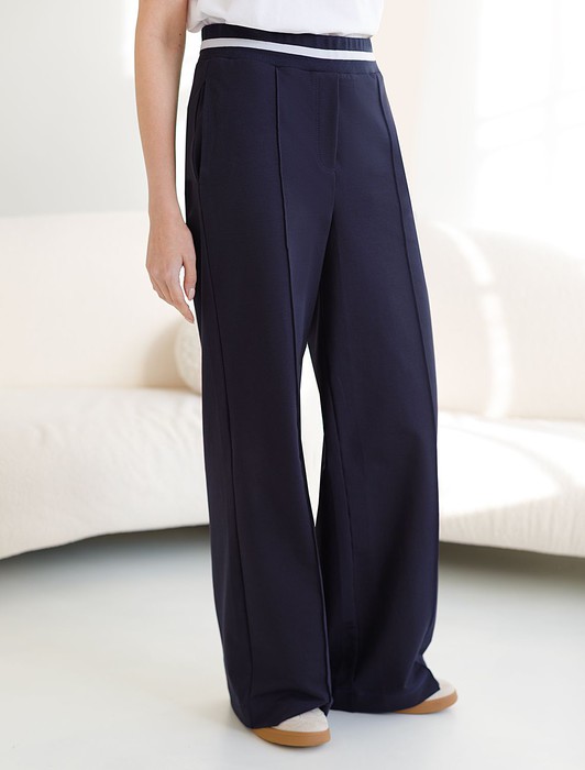 Состав: 95%Хлопок 5%ПУ Плотность: 240 Г/м2Брюки темно-синего цвета с удобным эластичным поясом на резинке и карманами по бокам выполнены из премиального футера-двухнитки плотностью 240 Г/м2. Наличие эластана в составе гарантирует комфорт и долговечность изделия, материал хорошо пропускает воздух, позволяя телу дышать. Свободный прямой крой обеспечивает свободу движений и максимальное удобство в любых ситуациях, поэтому они подойдут и на большие размеры, а так же на высокий или низкий рост. Фигура подчеркивается, а силуэт визуально вытягивается за счет кроя палаццо и застроченных декоративных стрелок. В повседневных трикотажных брюках вы будете чувствовать себя комфортно и уверенно, наслаждаясь каждым моментом дня. Спортивные брюки подходят для демисезонного использования, в летний период, для занятий спортом в помещении и на улице, а также как часть стиля casual.