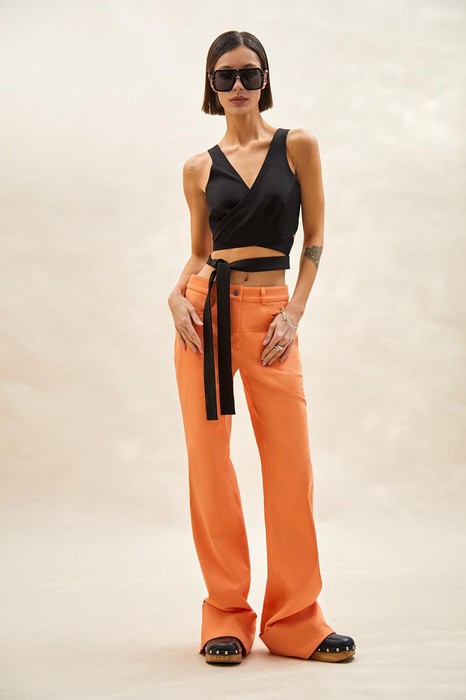 - застежка спереди на молнию и кнопку на притачном поясе;