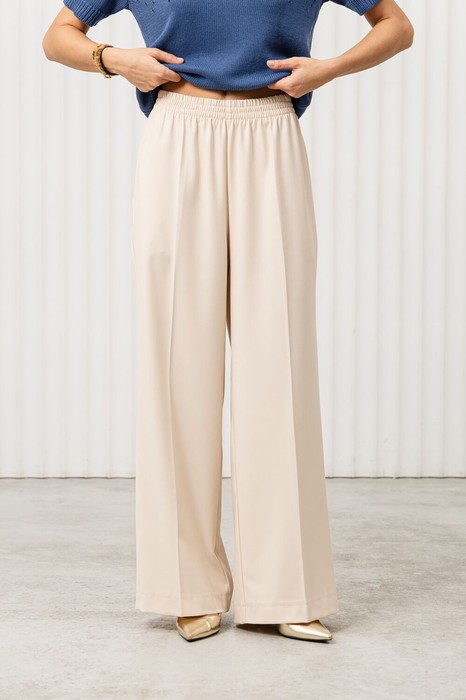 Дизайн: брюки свободного кроя с высокой посадкой и резинкой на поясе, что делает их удобными и практичными. Гладкая ткань и классический крой подчеркивают стиль и элегантность;