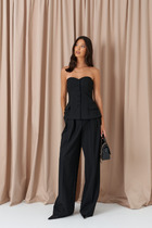 Брюки женские из костюмной ткани. Посадка- средняя. Слегка заужены к низу, с наклонными карманами и регулируемым резинкой поясом. Застегиааются на молнию по переду и одну пуговицу.