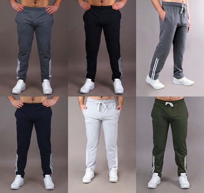 Ткань: футер петлевой.Расцветка Меланж состав:57%хлопок, 38% п/э, 5% лайкра.Расцветка:Черный,срый,темно-синий,хаки состав: 95% хлопок,5% лайкра.Брюки мужские с лампасами. Универсальные спортивные брюки для мужчин любой комплекции. Отлично сидят и не теряют своей формы благодаря высокому качеству ткани. Удобные в носке, обладают декоративными лампасами, карманами по бокам и резинкой в поясе.