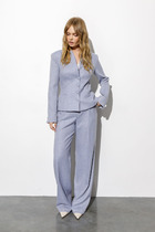 Брюки женские из гладкокрашеного фактурного полотна длинные, широкие по всей длине, на притачном поясе с эластичной тесьмой внутри, с карманами в боковых швах. Модным элементом является широкая подгибка нижних срезов.