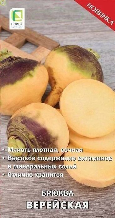 Среднеспелый холодостойкий сорт(от всходов до начала технической спелости 83-90 дней). Выращивается в открытом грунте, отлично хранится в зимний период. По вкусовым и полезным качествам сходна с репой, но превосходит ее по количеству минеральных солей и углеводов. Содержание витамина C в корнеплодах остается неизменным в течение всего периода хранения. Особенно полезна детям и пожилым людям. Корнеплод плоскоокруглой формы, с сильной антоциановой окраской кожуры, массой 300-400 г. Мякоть интенсивно желтая, плотная, сочная, хорошего вкуса. В пищу употребляют корнеплоды в свежем, варёном, тушёном виде.