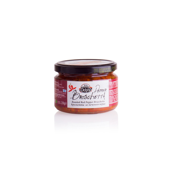 Описание Брускетта из печенного перца Delphi Состав: Перец печеный, подсолнечное масло, зеленые оливки, уксус бальзамический , чеснок, морская соль, сахар, зелень, регулятор кислотности: лимонная кислота. Масса нетто 230г Пищевая /Энергетическая ценность на 100г: 95кКал/390кДж Жиры 6,5г из них насыщенные 1,1г, углеводы 7,5г, из них сахара 6,1г, белки 1,1г, клетчатка 0,4г, соль 2,3г Продукт не содержит ГМО. Продукт пастеризован. Изготовитель: Intercomm Foods S.A. 8th klm Larissa Sykourion, 41110 Larissa, Greece Страна происхождения Греция. Изготовлено в соответствии со спецификацией. Производство сертифицировано по ELOT EN ISO 22000:2005 Хранить в сухом прохладном месте. Открытую банку хранить в холодильнике и употребить в течение двух дней. Срок годности 24 месяца. Дата производства: смотри на крышке. Годен до: смотри на крышке.