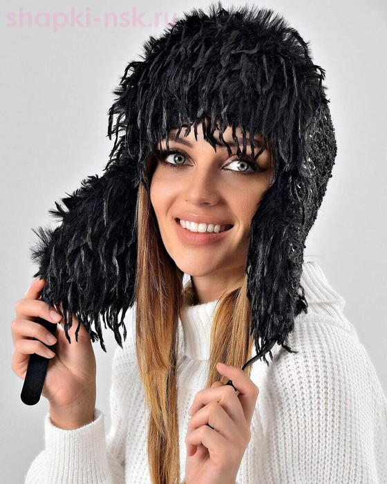Совместные покупки Нижний Тагил Женские аксессуары Шапки — Букле пайетка страус Ушанка флис (56-58)