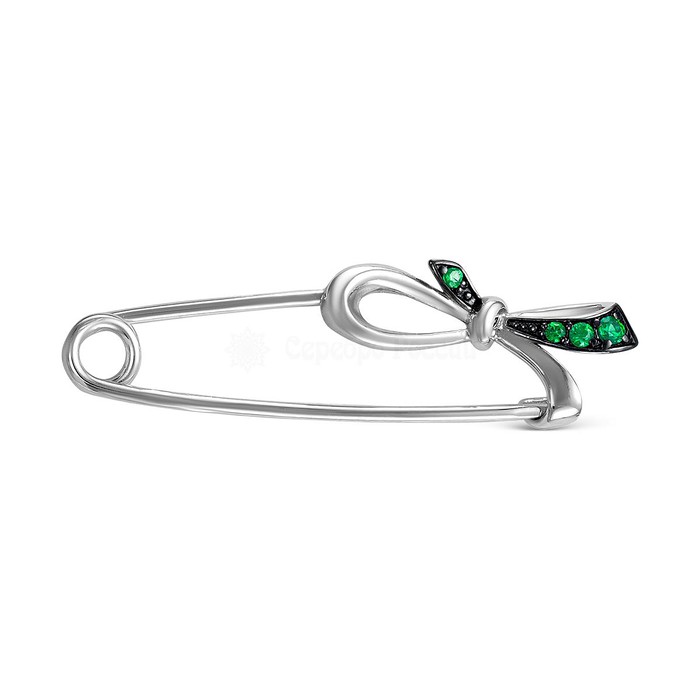 Булавка из серебра с фианитами родированная - Бант б-752р232