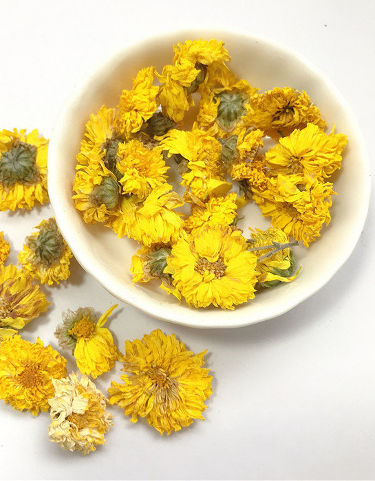 Сушеные бутоны хризантемы придают чаю неповторимый нежный аромат.1. Возьмите 3-4 плода и положите их в 400 мл стакан.2. добавить кипяток (100 градусов) примерно на 7- 8 минут накрыть крышкой, выдержать 3-5 минут.3, Пейте до оставшейся 1/3 чайного настоя, затем заваривайте снова, чтобы концентрация чнапитка до и после была более равномерной.4. можно добавить сахар или мед, или смешать с любым видом чая, который вы любите.Это уникальное лекарственное растение. Настой из золотых хризантем снимает похмельный синдром, улучшает пищеварение, обладает более выраженным лечебным эффектом по сравнению с белой хризантемой. Используется как желчегонное средство. Снижает жар тела, улучшает зрение, выводит токсины из организма, полезна для печени, почек. Применяется при перегреве, простуде, головной боли и головокружении.