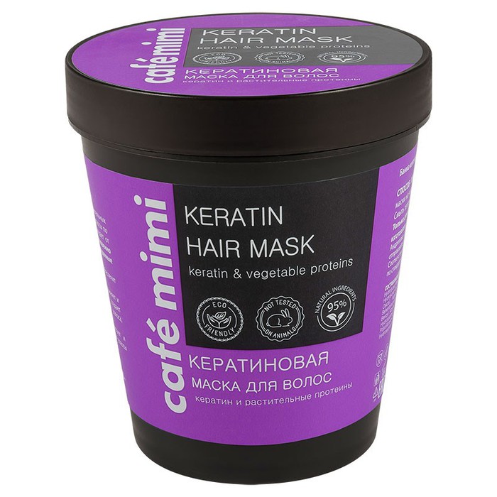 Кератиновая маска для волос интенсивно восстанавливает волосы по всей длине, усиливает блеск волос, защищает от негативных факторов среды. Мгновенно преображает даже сильно поврежденные волосы.