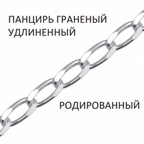Цепь Панцирь удлиненный с алмазной огранкой родированный