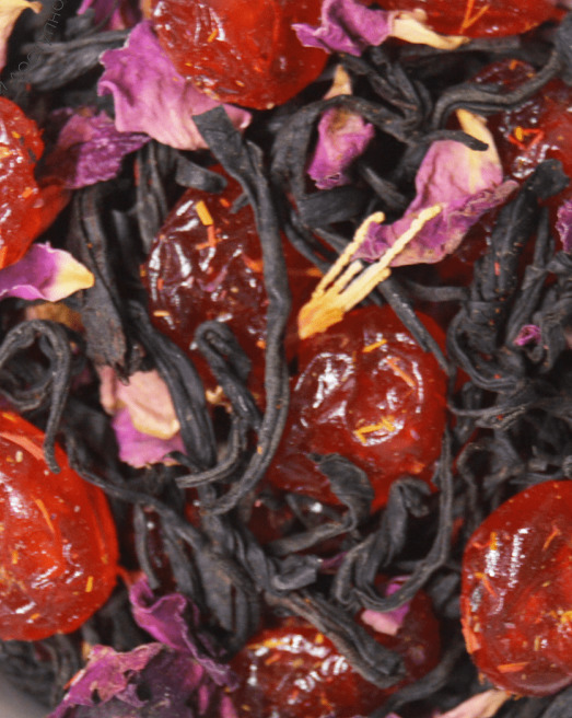 Купаж из классических черных индийских чаев с добавлением вишни и лепестков розы и сафлора. Содержит пищевые ароматические масла.