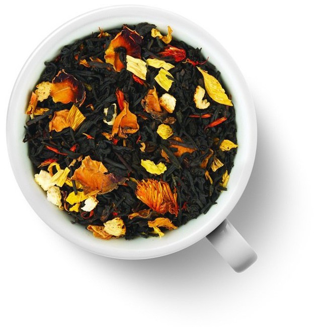 Краткое описание: Смесь китайских, цейлонских и индийских чаев с добавлением цедры апельсина, лепестков розы и сафлора, цветков подсолнечника и кусочков ванили. Чай ароматизирован натуральными маслами.