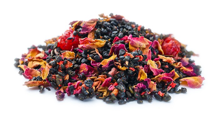 Краткое описание: Зелёный чай ганпаудер с добавлением вишни, кусочков клубники, лепестков роз и сказочным сладким фруктовым ароматом.