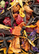 Краткое описание: Зелёный крупнолистовой чай, жасмин, цветы мальвы, лепестки подсолнечника, кусочки клубники, красная смородина, масла. Сорт высший.