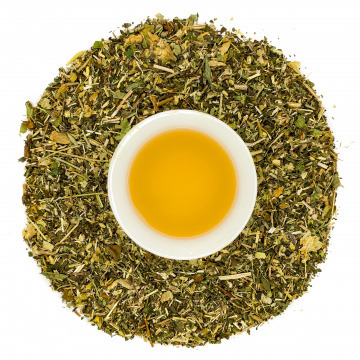Мелисса, мята, зверобой, мать-и-мачеха, липа, тысячелистник, душица, хмель, валерьяна. Эффективный сбор для борьбы с тревожностью, расстройством нервной системы. Помогает при нарушении сна.