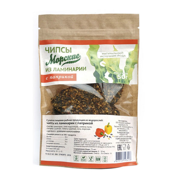 Чипсы морские из ламинарии с паприкой, 50 г
