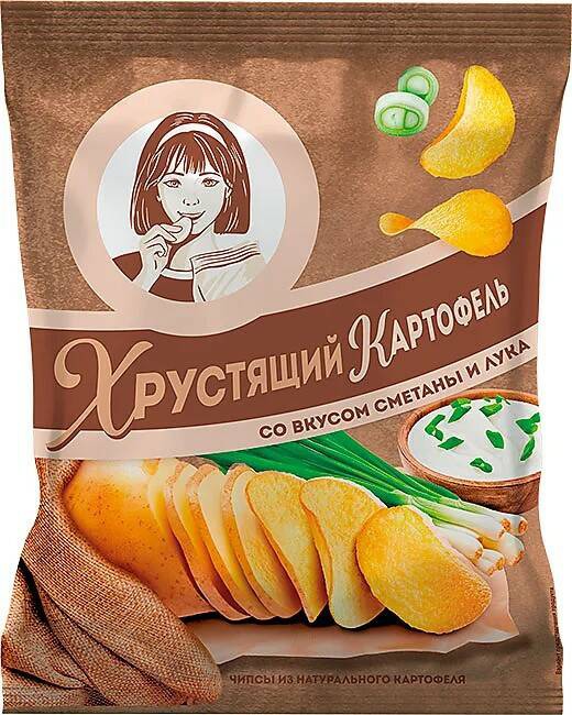 Натуральные картофельные чипсы со вкусом сметаны и лука.