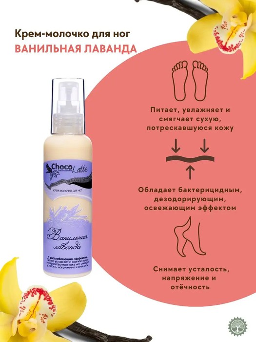 Крем-МОЛОЧКО для ног «ВАНИЛЬНАЯ ЛАВАНДА» с расслабляющим эффектом .