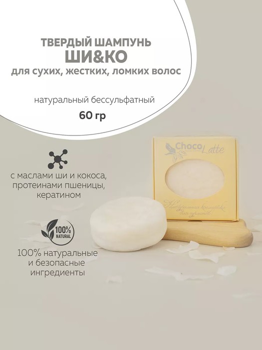 Твердый шампунь «ШИ&КО» — натуральное средство для очищения сухих, жестких, склонных к ломкости волос.