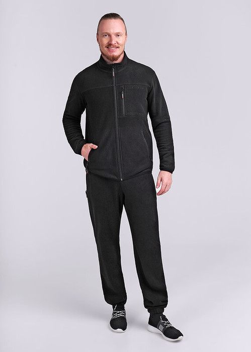 Мужские брюки из мягкого приятного полотна флис на манжете. Изделие дополнено функциональными карманами на молнии и шнуром по поясу. Данные брюки станут незаменимым вариантом в холодное время года.