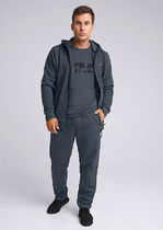 Прямые мужские зауженные брюки из трикотажного полотна с регулируемой талией. Функциональность модели придают боковые карманы, а интересным акцентом в изделии является фирменная фурнитура и дизайнерский принт. Брюки эргономичные и удобные.