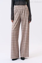 Брюки прямые,широкие из тканого полотна лен с вискозой. По талии притачной пояс на внутренней резинке, в поясе шнур из основной ткани. Боковые карманы в отрезном бочке.