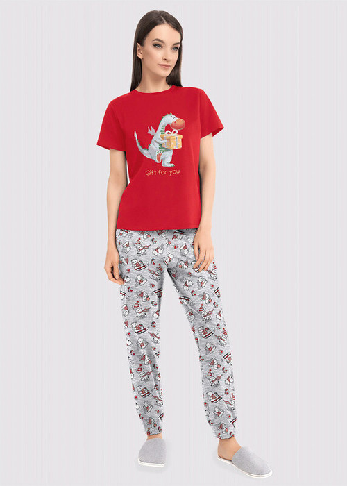 Clever Брюки женские для дома CLE LTR13-1068у молочный/красный