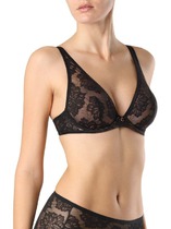 Бюстгальтер классической формы с формованной чашкой с гелевым Push-up. Детали изделия выполнены из эластичного кружева. Бретели эластичные, съемные. Центральная деталь декорирована бантиком из атласной ленты.