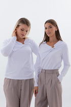 Джемпер прямого силуэта из вискозного трикотажного полотна кашкорсе с застежкой на пуговицы. Втачной длинный рукав. Округлая горловина с окантовкой.