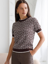 Вязаный джемпер прямого силуэта из акриловой пряжи с добавлением хлопка, ажурного переплетения на основе ластика. Округлая горловина с бейкой. Длинный втачной рукав. По низу изделия и рукавов узкие манжеты. Спереди нашивка металл.