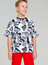 Оверсайз футболка для подростка из 100% хлопка. Горловина оформлена эластичной обтачкой из кашкорсе. Спереди актуальный принт.