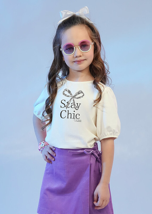 Хлопкая футболка с романтичным рукавом-фонариком. Комфортная посадка, стильный декор с пайетками. Сочетай с любимыми юбками и будь самой милой.