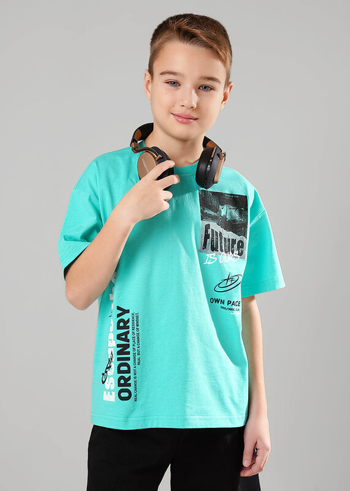 Хлопковая футболка в трендовом оттенке для подростка на каждый день! Эластичная горловина, яркий стильный принт спереди и на спинке. Сочетай футболку с брюками и шортами из новой коллекци и будь в тренде!