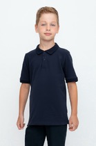 Базовое поло на пике. По краю воротника и манжет отделочная полоска. Застежка на пуговицы с логотипом. Сбоку невысокие разрезы. Украшена модель брендированной вышивкой.