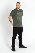 Футболка свободного кроя с круглым вырезом горловины и коротким рукавом. Модель выполнена из трикотажного хлопкового полотна. Изделие дополнено текстовым принтом. Универсальная вещь мужского гардероба на каждый день.