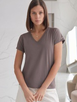 Джемпер умеренного объема из хлопкового трикотажного полотна -рибана. Втачной короткий рукав. Округлая горловина с окантовкой.