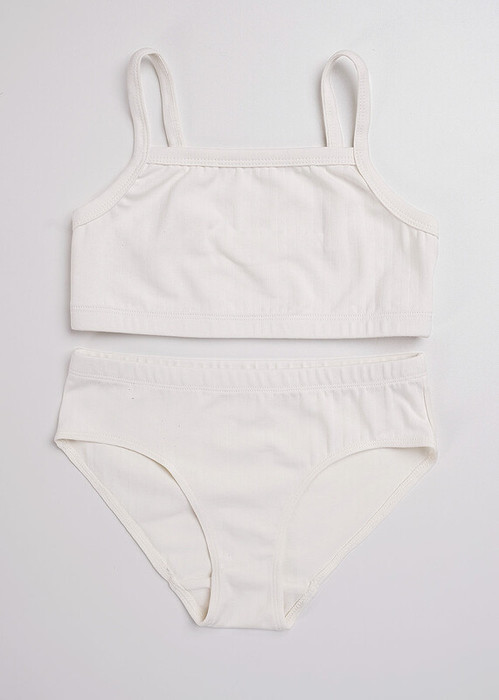 Нежный детский комплект белья в молочном оттенке: мягкий топ и удобные трусики из приятной хлопковой лапши. Натуральные материалы и продуманный крой обеспечивают идеальную посадку и комфорт в течение всего дня.