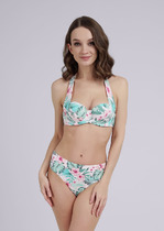Костюм купальный женский из полиамида с эластаном. Лиф с круглыми чашечками с косточками, с завязками вокруг шеи, на магнитной застежке, трусы бикини на высокой посадке.