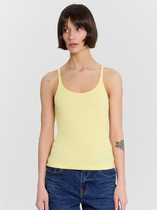 Базовая, малообъемная майка из трикотажного, эластичного полотна. V-образная горловина обработана кружевом. Широкая бретель. Производство Узбекистан.