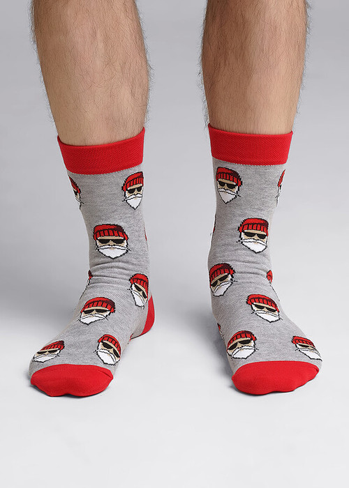 Новогодние мужские носки (гладь) рисунок "" Дед мороз в очках""