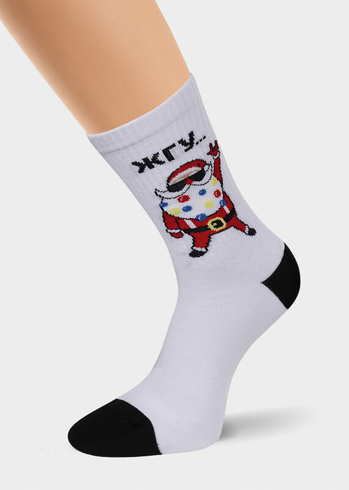 стильные мужские удлиненные носки с оригинальным жаккардовым рисунком с изображением деда мороза и надписью ЖГУ