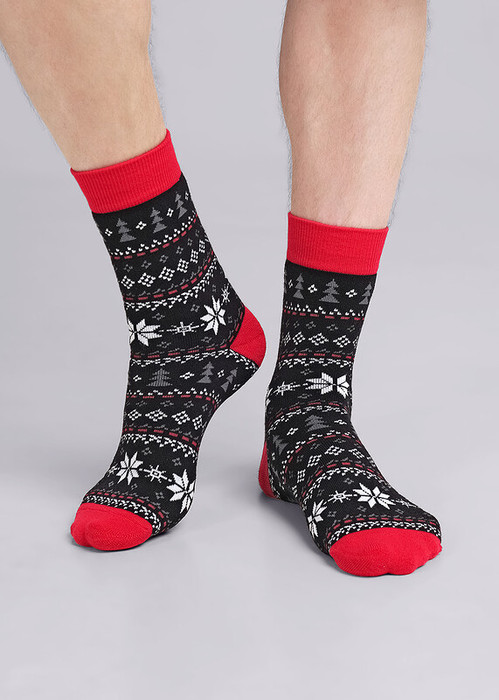 мужские новогодние плюшевые носки со скандинавским орнаментом