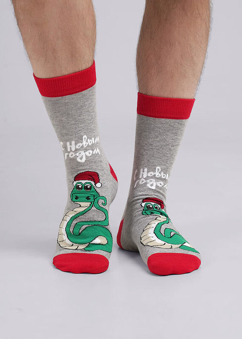 мужские новогодние носки с рисунком змея и надписью с новым годом