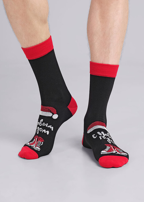 мужские новогодние носки с рисунком, с надписью С НОВЫМ ГОДОМ