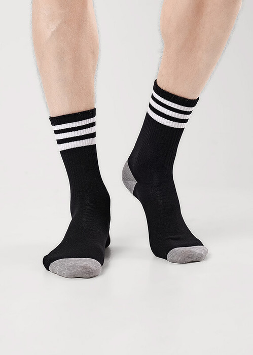 мужские носки с выделенными пяткоц и мыском, с тремя полосками
